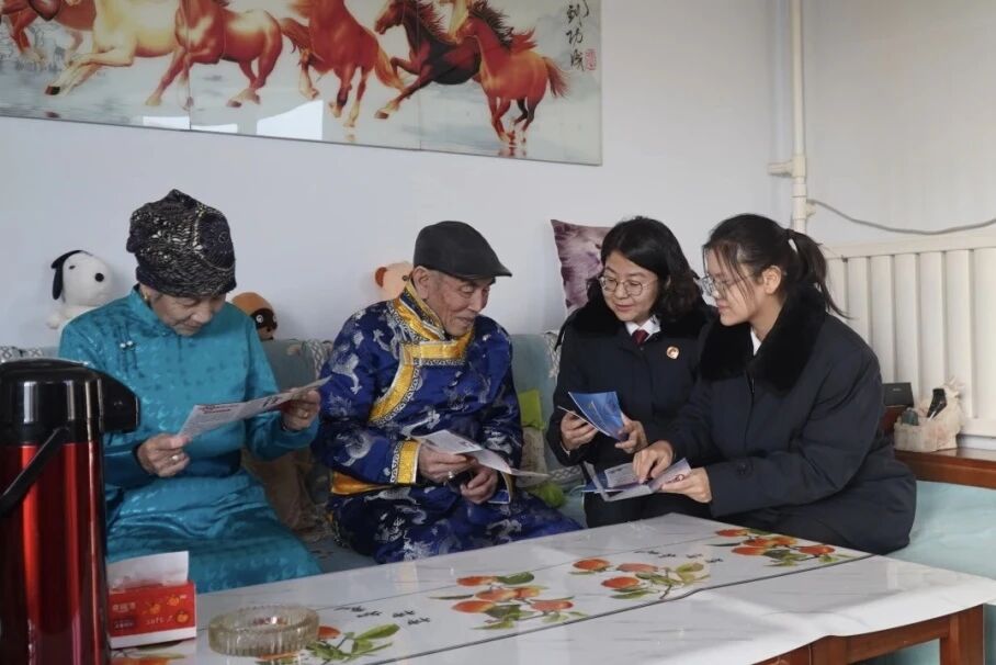 乌拉特前旗检察院组织检察人员到阿力奔嘎查开展“增强防范意识、远离非法金融骗局”宣传活动,将法律知识送到群众“家门口”,为人民筑牢经济安全防线。